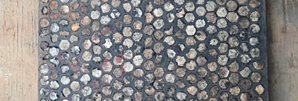 Rubber embedded ceramic liners are unique in some applications and give as high as 12 times more resistant to wear then the toughest steel(even Hardox 600). It is new generation composite product with highly wear-resistant surface of cylindrical/hexagonal alumina ceramic rods bound within a resilient rubber matrix. The extremely hard ceramic eliminates provide unsurpassed resistance to wear, while elastic properties of rubber effectively dampen the impact forces. These plates are necessarily steel backed.